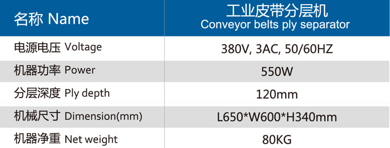 皮帶開齒配套使用,用于分離多層熱塑性傳動帶,可調節分層機上壓輪及分層機切片,比如PVC PU傳送帶分層,厚度范圍為0.8~20mm,分層厚度調節旋鈕,腳踏開關控制,操作簡單快捷。