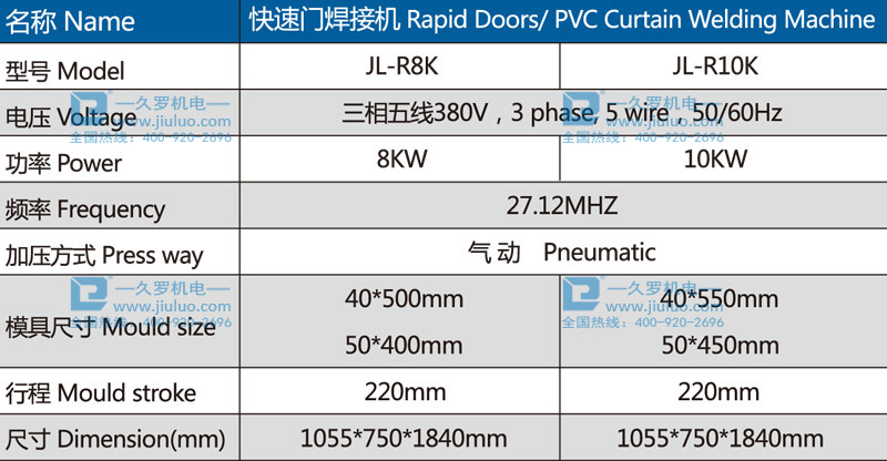 久羅公司結合歐美的技術理念開發生產的快速門焊接機,它屬于特殊化的膜材料焊接設備,除了適用于各類PVC/TPU快速門焊接以外,也適用適用于pvc篷房、帳篷、建筑膜結構、張拉膜、空間膜、索膜、停車棚(汽車蓬)、水囊、水池、軍用水袋、車棚、膜結構景觀小品的等產品的加工制作。