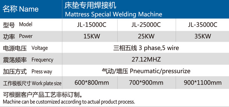 ※ 此設備專用于大型床墊、醫用床墊、冰墊焊接,采用穩定的元件,堅固的外形結構。
