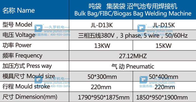 久羅噸袋、集裝袋、沼氣池焊接機為軟體高壓氧艙專用焊接機,定位方便、準確、焊接牢固平整??捎糜诘撞亢椭本€焊接模具,可根據客戶需求更換。