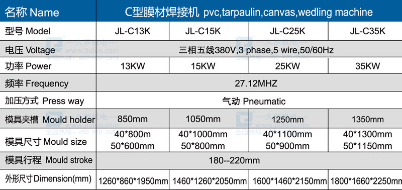 久羅C型膜材高頻機采用特殊的機器結構,加大了機器后部儲料空間,適合大型膜材焊接, 拼接,機器采用久羅的下部發高頻方式,具有焊接快,牢固度好 ,焊接美觀等特點, 深受新老客戶青睞。