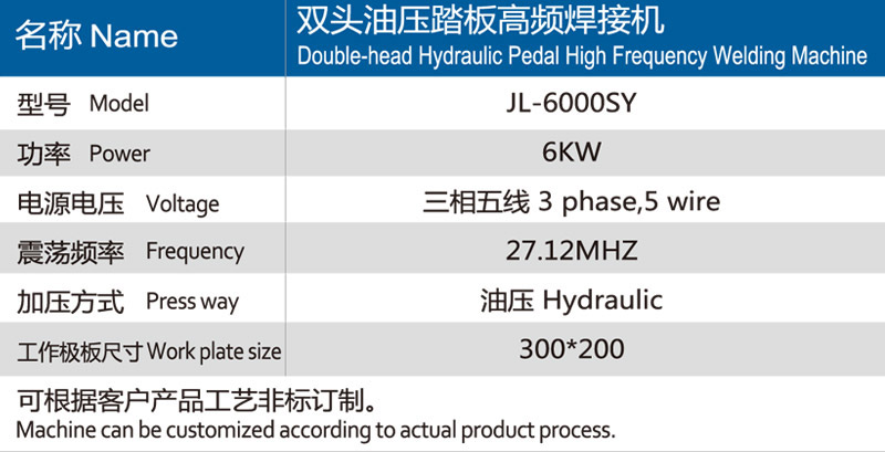 - 【設備功能及用途】 ※ 本設備適用于吸塑泡殼+紙卡,pvc雙泡殼熔接切邊,PET/APET/PETG/GAG熔斷 ※ 設備穩定高產,提高工作效率,節省人工成本 ※ 裝置高靈敏度NL5557火花防止器,有效防止損壞模具 ※ 穩定耐用電子管,低耗的振蕩電路,輸出穩定可靠 ※ 焊接強度高,適合大中小廠家生產需求